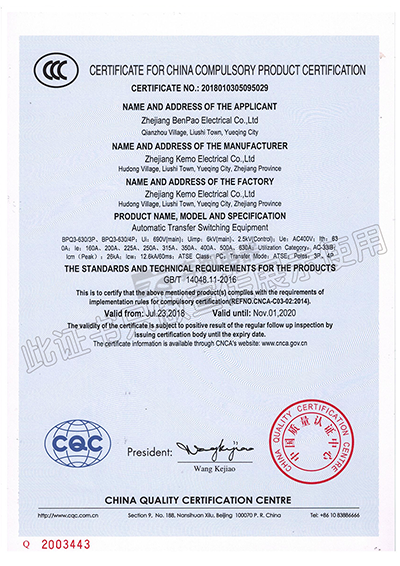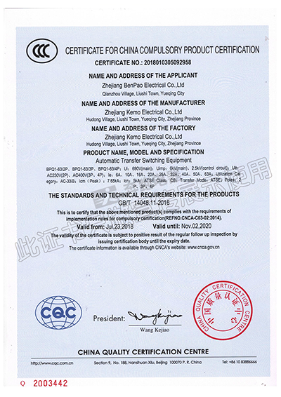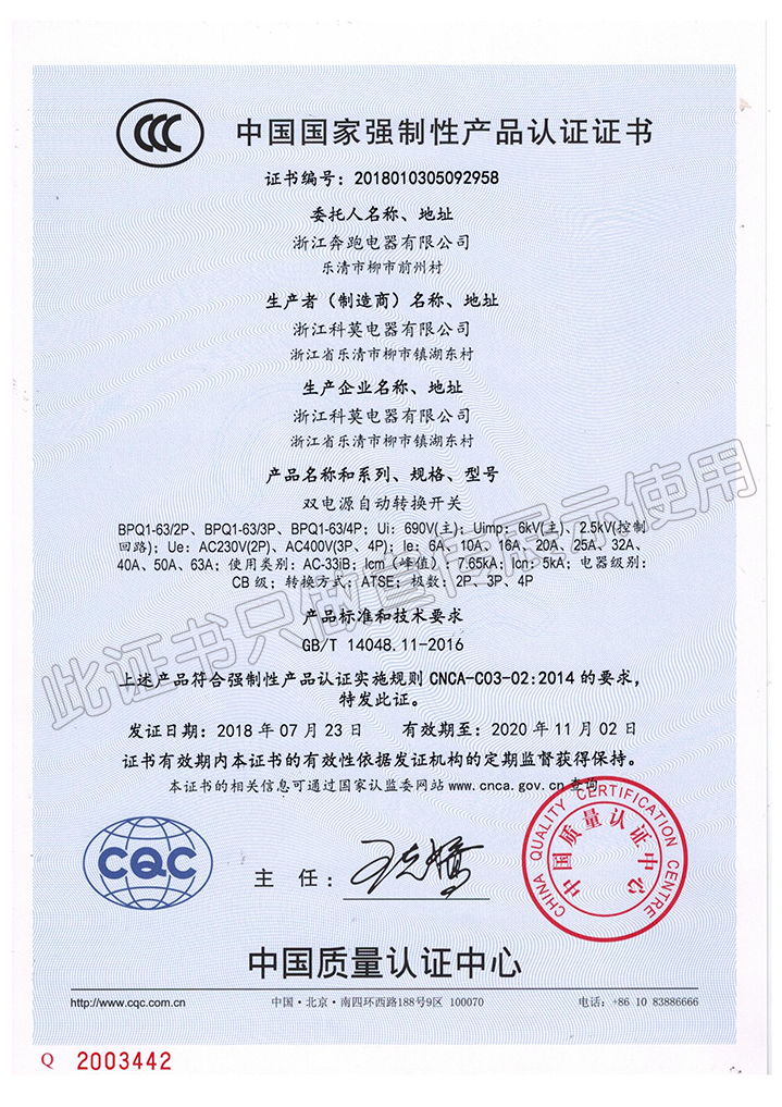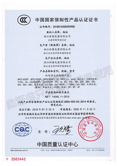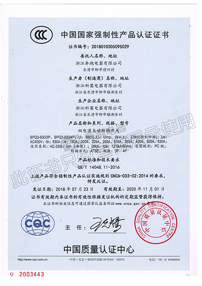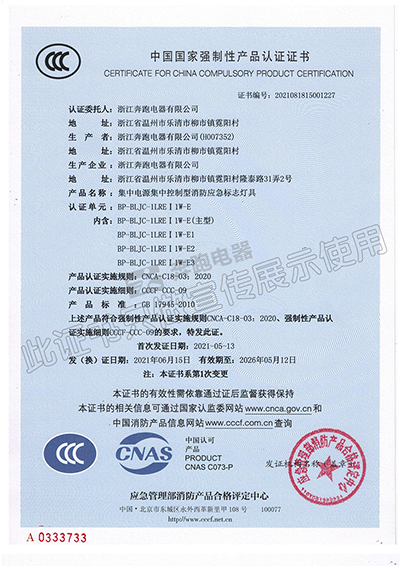 中國國家強制性產品認證證書