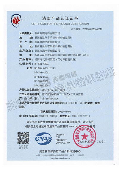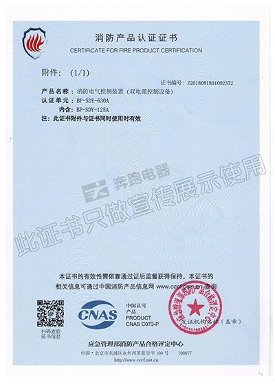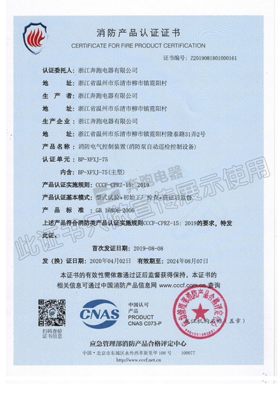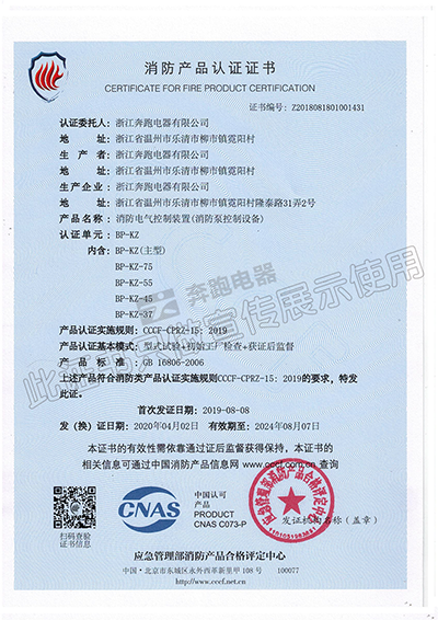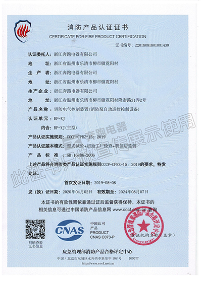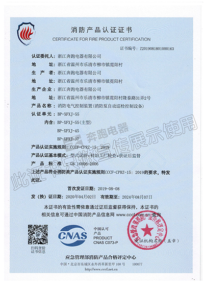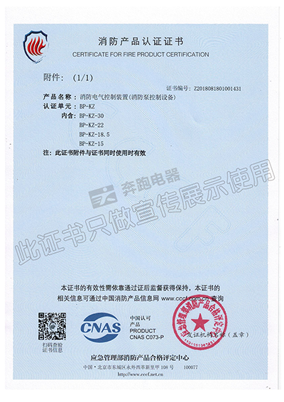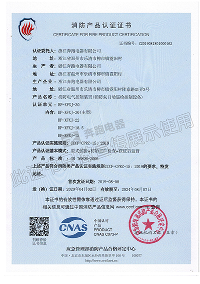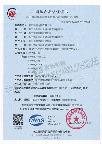 消防產品認證證書